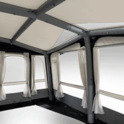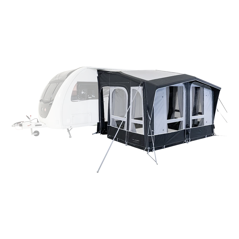 The ground-breaking versatility of our Club AIR All-Season 330 S enables it to fit a variety of leisure vehicles. Thanks to its patented Multi-Height System, the inflatable static awning can be used with both caravans and motorhomes with a keder connection that’s adjustable to various heights. Simply unzip the gusseted side panel, peg the awning down to fine tune the fitment, then close the internal zips to hide any excess material.