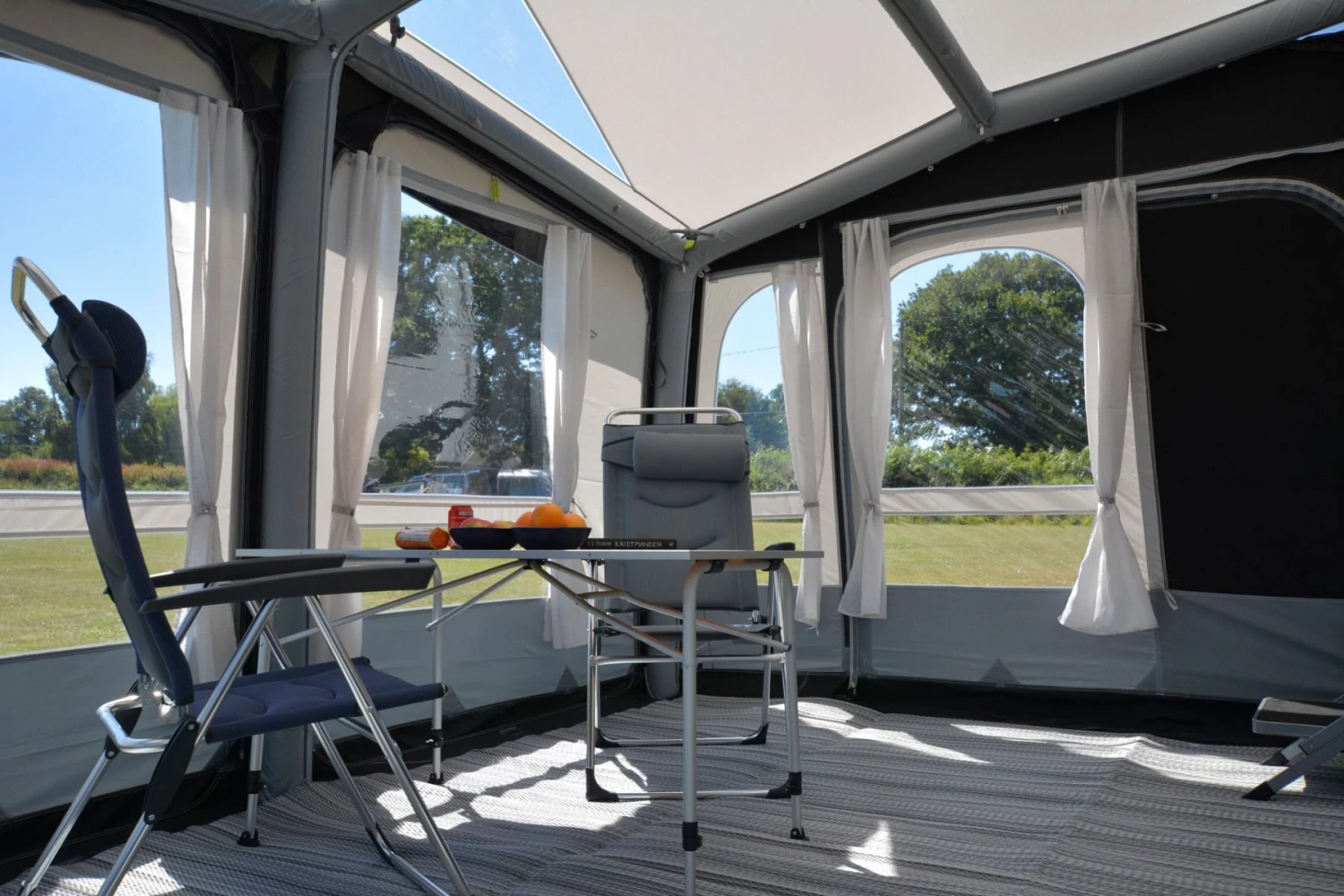 The ground-breaking versatility of our Club AIR Pro 260 S enables it to fit a variety of leisure vehicles. Thanks to its patented Multi-Height System, the inflatable static awning can be used with both caravans and motorhomes with a keder connection that’s adjustable to various heights. Simply unzip the gusseted side panel, peg the awning down to fine tune the fitment, then close the internal zips to hide any excess material.