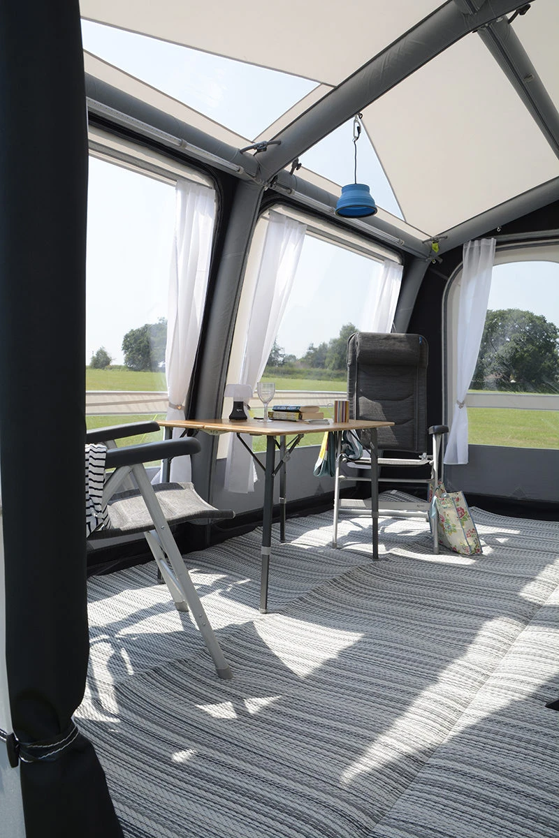 The ground-breaking versatility of our Rally AIR Pro 390 S enables it to fit a variety of leisure vehicles. Thanks to its patented Multi-Height System, the inflatable static awning can be used with both caravans and motorhomes with a keder connection that’s adjustable to various heights. Simply unzip the gusseted side panel, peg the awning down to fine tune the fitment, then close the internal zips to hide any excess material.
