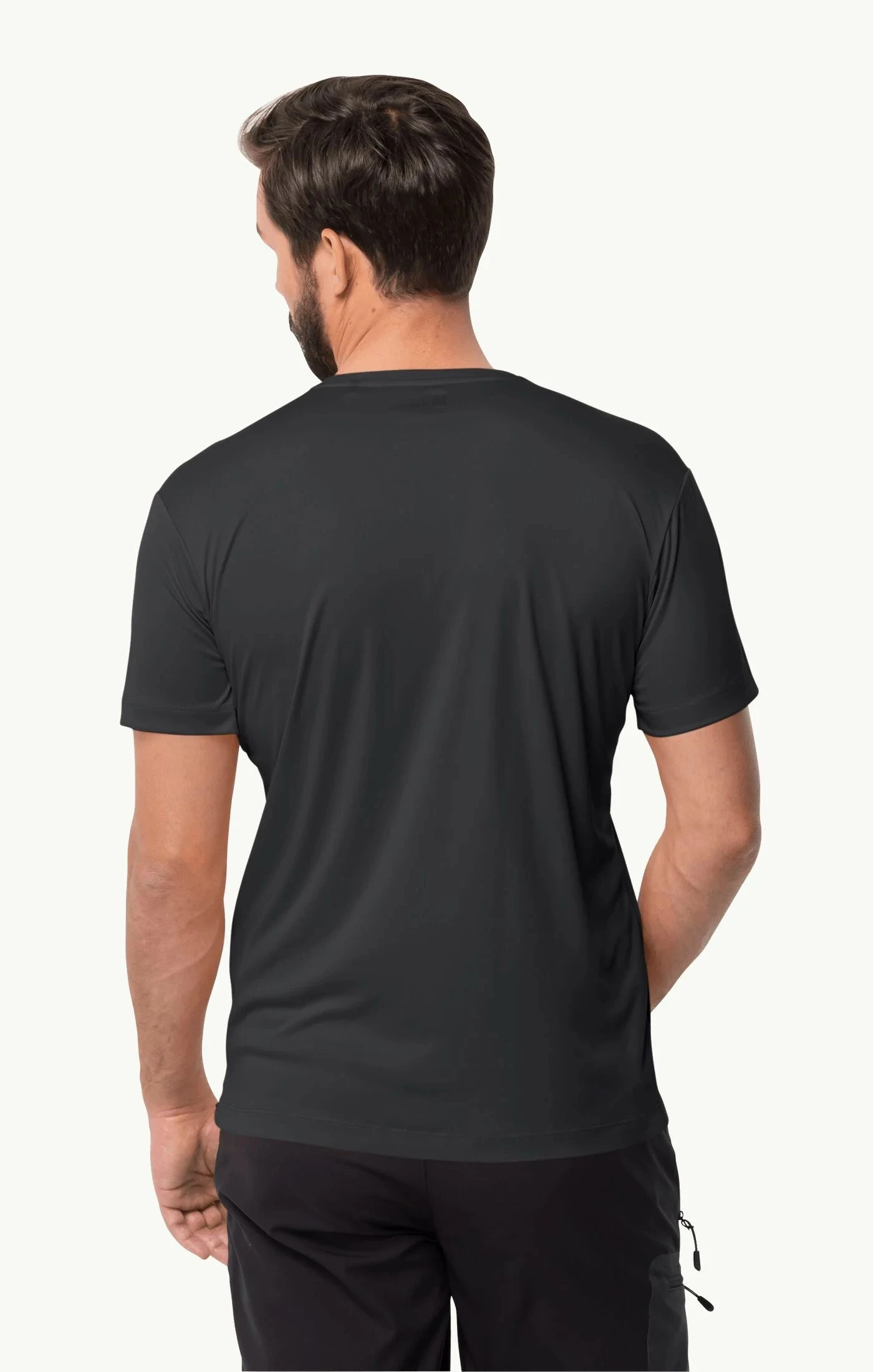 Look and feel your best in the Jack Wolfskin Peak Graphic Tee Mens. This functional men’s T-shirt is made with a lightweight and soft fabric for superior comfort. It also has moisture regulating and fast drying abilities, as well as odour inhibiting technology, all in one package. At only 120g, you’ll barely feel like you’re wearing anything.