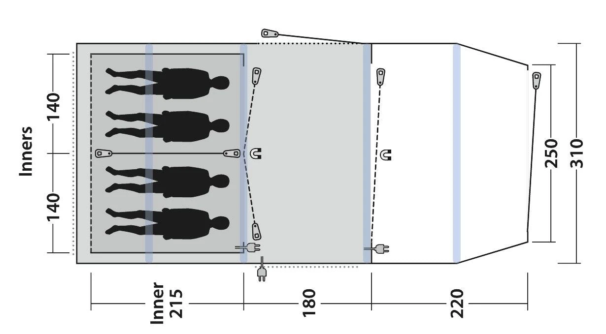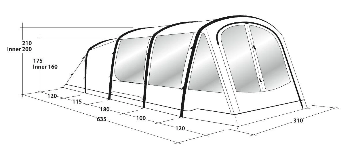 The Parkdale 4PA from Outwell is a fantastic 4 person inflatable tent that boasts a hydrostatic head of a whopping 4000mm. That’s 100% waterproof, and windproof by anyones standards. The bedrooms are at the back and will easily sleep up to four adults. In front of the bedroom is a large living area that is big enough should the weather turn and you find yourselves all inside, it also has the benefit of a fully sewn in ground sheet. In front of the living area is another smaller living area that is perfect for muddy boots and wet towels. This area does not have a sewn in ground sheet. A generous porch area on the front finishes this tent of a treat. All of this and the Parkdale 4PA inflates easily in minutes, with the pump provided.