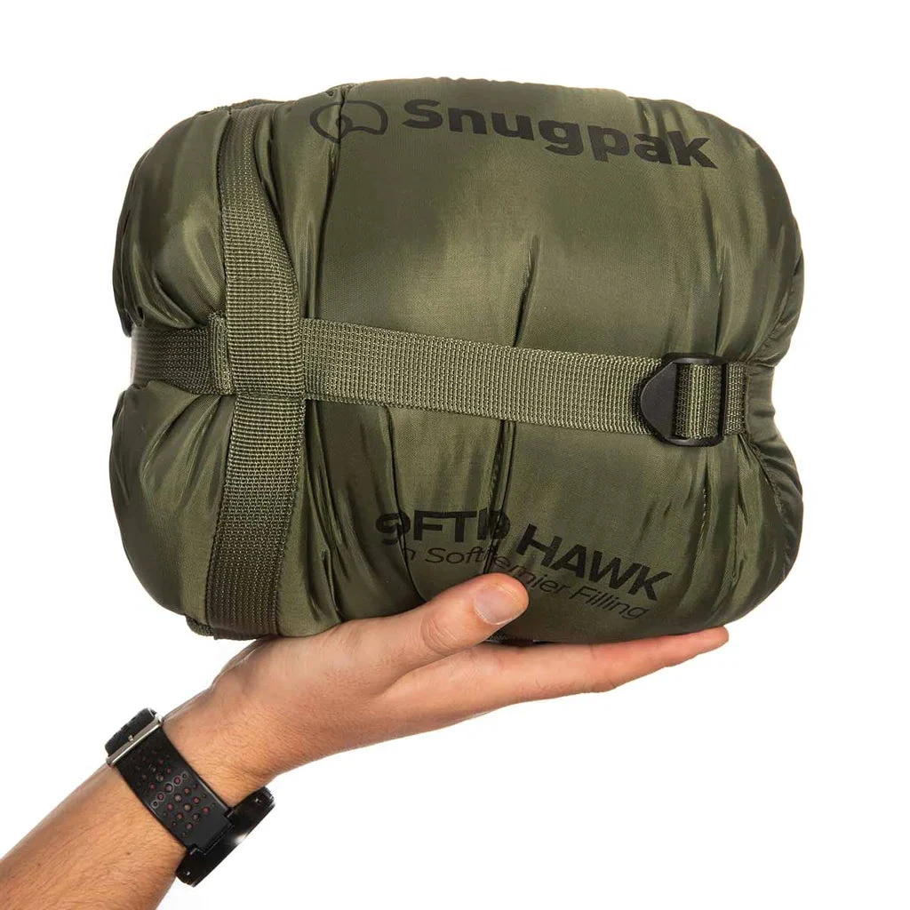 Experience optimal warmth, comfort, and durability with the Snugpak Softie 9 Hawk sleeping bag. This sleeping bag is made in the UK with exclusive Softie® Premier insulation and no stitch-through construction to reduce cold spots. A two-way YKK® side zip and elasticated drawcord-adjustable hood provide further warmth and protection. Plus, an included compression stuff sack allows for easy carrying and storage. Sleep soundly with a temperature rating of -10°C / 14°F.