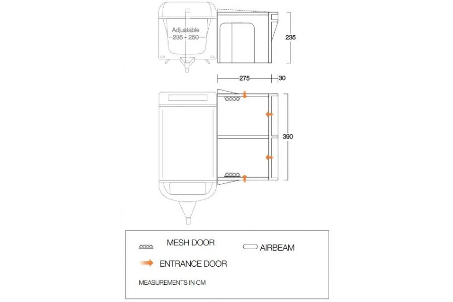 The Height of luxury, the Riviera Air 390 Elements All Season is top of the tree when it comes to quality and durability. Made using Vango’s elements all season fabric, the Riviera is perfect for long touring holidays in a multiude of climates. The whole thing inflates easily and quickly thanks to one single inflation point and the pump is even thrown in too. There are diamond clear windows all round, ensuring you enjoy the view and the multi zip privacy curtains ensure privacy when you require it. Condensation is reduced too, because the Riviera all season comes with skyliners as standard. You can even add an optional annex should require even more space.