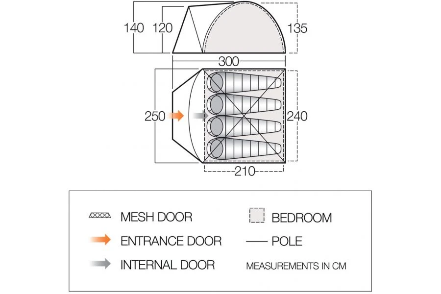 The Vango Tay 400 is a 4-man dome style tent with a Gothic Arch pole, providing ample shelter from the weather at the entrance. This type of Dome style tent creates great space and stability, in a small pack size. Crystal Clear windows allow light into the porch area. The Tay range is one of the best tents for festivals and weekend camping.